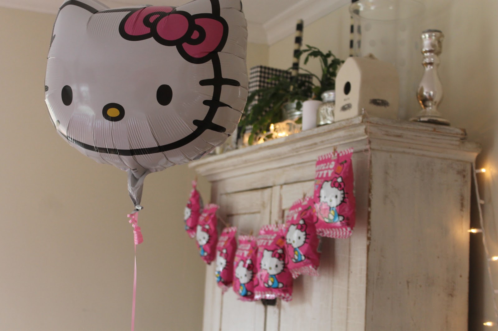 We had a make your own hello kitty candy bracelet and over sized ice cream coloring sheets with hello kitty crayons. The girls played pin the bow on hello kitty.